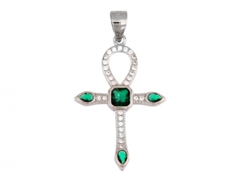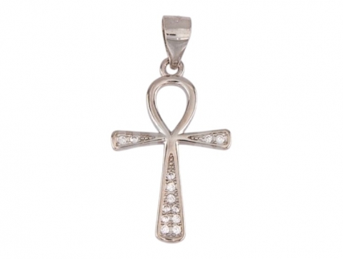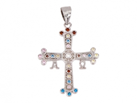 Silver cross pendant with zircons. Length: 26.5 mm (with lug). Length: 24.5 mm (without lug). Width: 17 mm