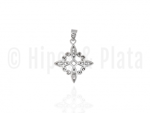 Colgante rodiado con circonitas Nudo de brujas Largo de 20mm. Ancho de 19mm
