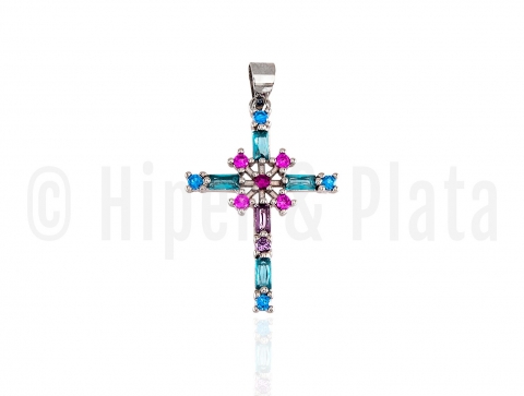 Colgante cruz en plata rodiada con circonitas.