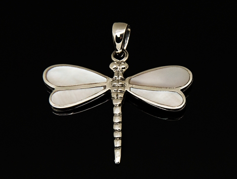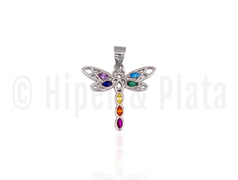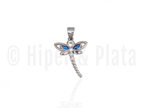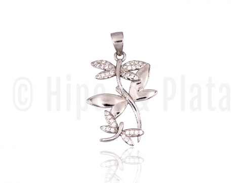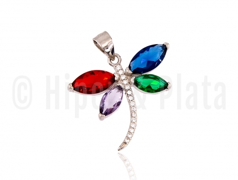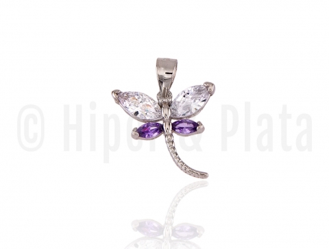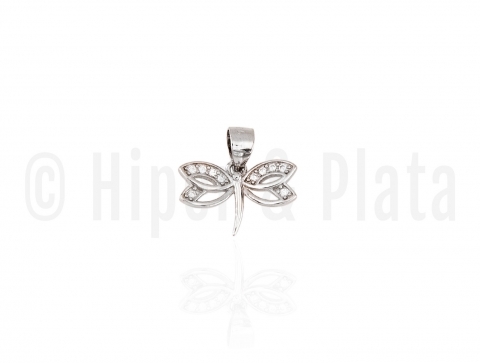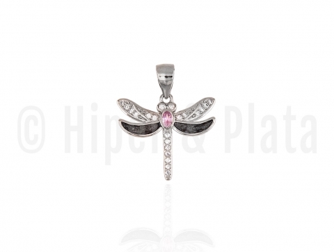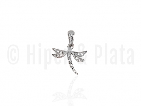 Dragonfly pendant in rhodium-plated sterling silver with zircons