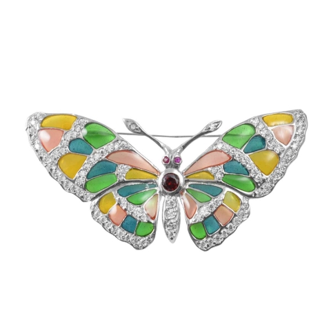 Butterflies with stones and pearl enamels in Sterling Silver. Measurements: Width x Height 5.5 x 4.5 cm.