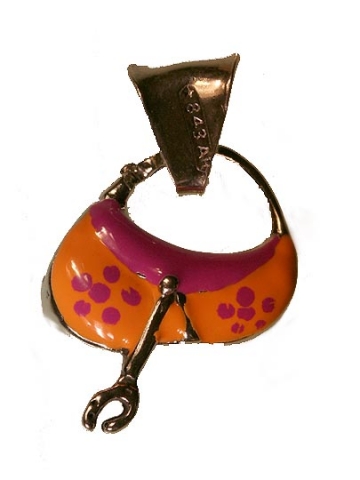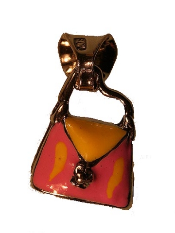 Bolso esmaltado .Peso 2 Gr en Plata 800. Medidas 1.5x2 cm.