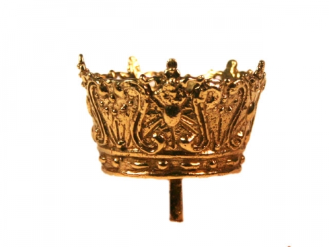 Corona en metal dorado.Medidas (a*h)3.5*2cm. Diametro 2.5cm