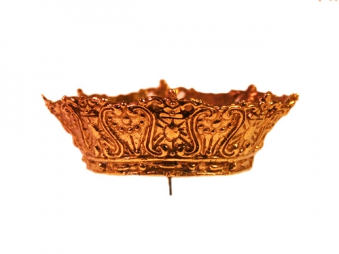Gold metal crown. Measures (w*h)2.5*1cm.Diameter 2cm