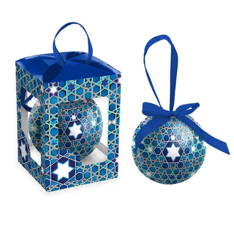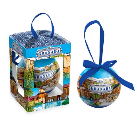 Bola Mosaico arabesco con lazo azul para el árbol de Navidad. Medidas 7.5 cm.