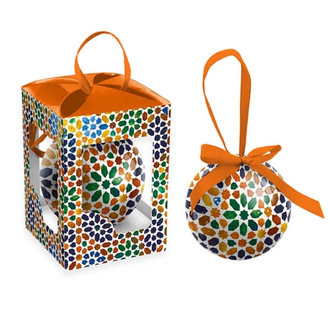 Bola Mosaico arabesco con lazo naranja para el árbol de Navidad. Medidas 7.5 cm.