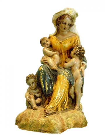 Seated Virgin with three angels 15 cm.