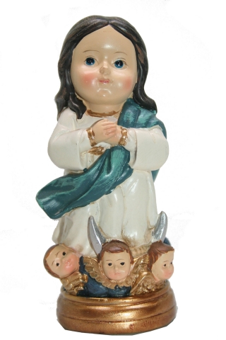 Imágenes "Little Drops Water" : Virgen Inmaculada Infantil. Realizado en resina policromada. Medida de altura 11 cm.