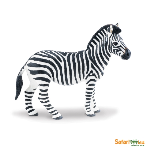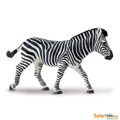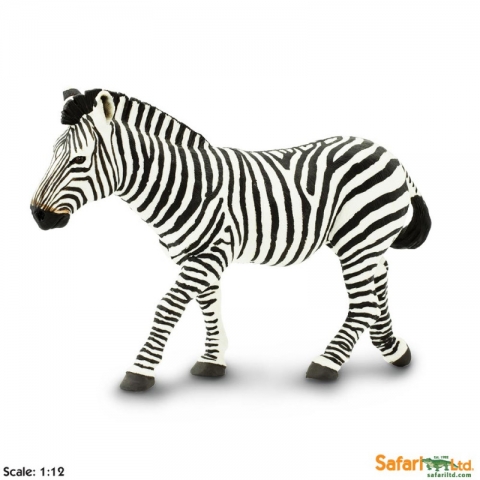 Cebra de las llanuras. Medidas en cm: 12,07 × 4,45 × 8,26 cm ( largo x ancho x alto). Diseño de Safari.