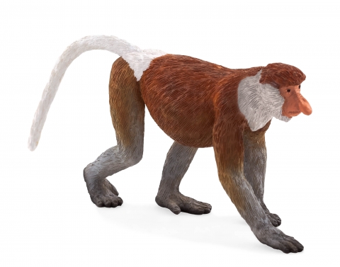 Proboscis monkey. Dimension: 9,8 x 2,9 x 4,6 cm (W x D x H). Schleich model.