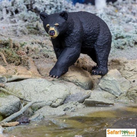 Black Bear. Size: 7.41" L x 3.04" W 4.41" H . Weight : 304 gr. Safari Design. Scale 1:10.