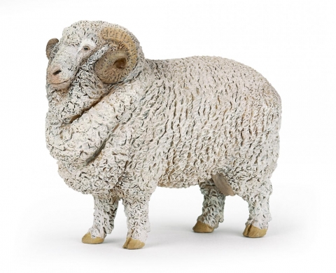 Merino sheep. Design Papo. Dimensions (LxWxH): approx. 7.4x3.2x6.5 cm Weight approx. 88g General manufacturer´s recommendation: 3 years and older