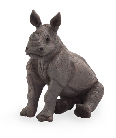 Rinoceronte bebé sentado. Medidas:Largo 6 cm,Ancho 3.5 cm y Alto 6.5 cm . Peso: 20 gr. Diseño de Mojo.