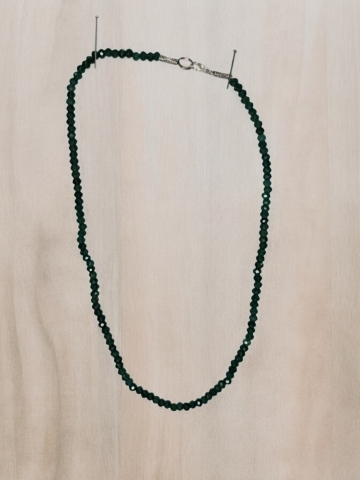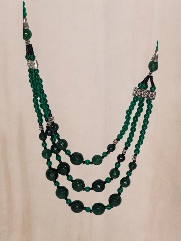 Carved natural stone necklace. Stone: Emerald. Approximate measurement: 40 cm.