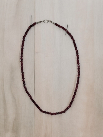Carved natural stone necklace. Stone: Ruby. Approximate measurement: 40 cm.