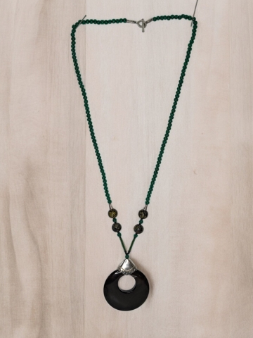 Carved natural stone necklace. Stone: Tourmaline. Approximate measurement: 40 cm.