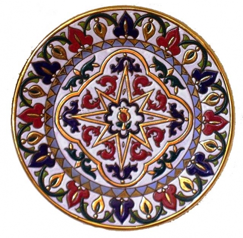 Plato de Cerámica granadina en cuerda seca con oro. Disponible en varios tamaños. Acabado Cuerda Seca con oro de 24 quilates.