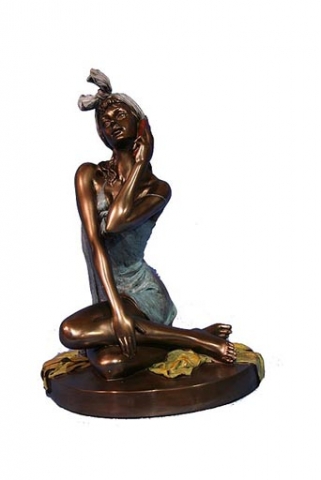 Woman with tray and camellias bronze patina finish. Measures 26x18x26 cm.Ref 03000687-AN10356A4