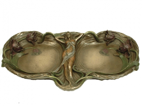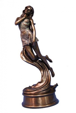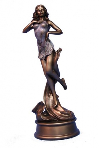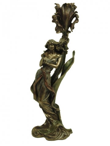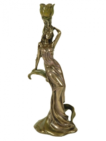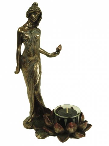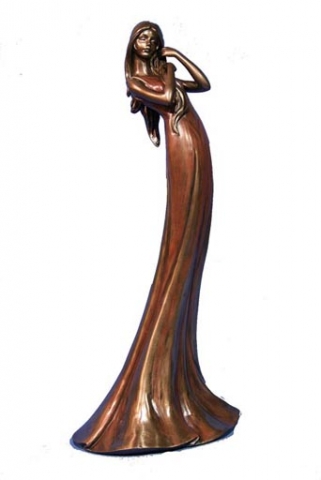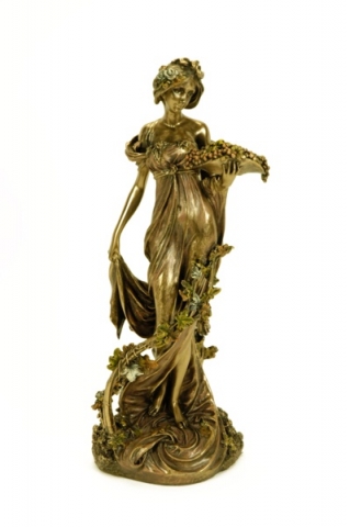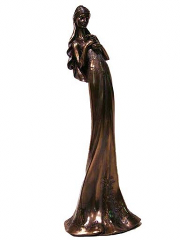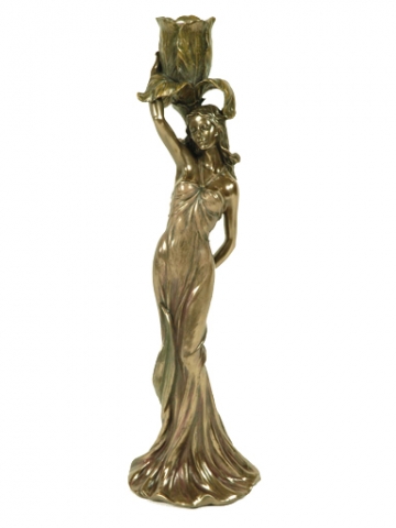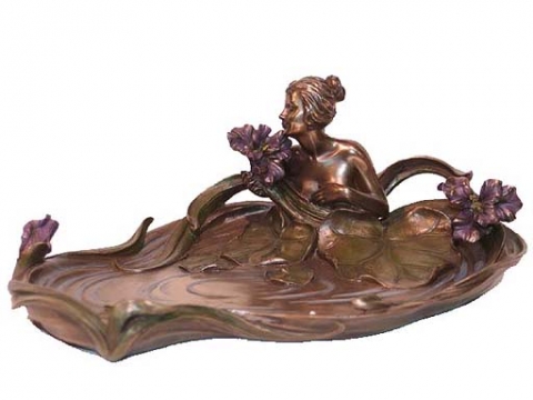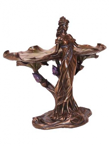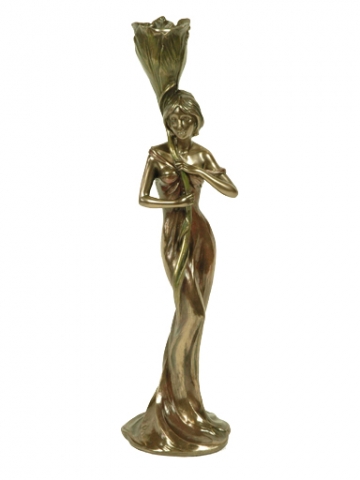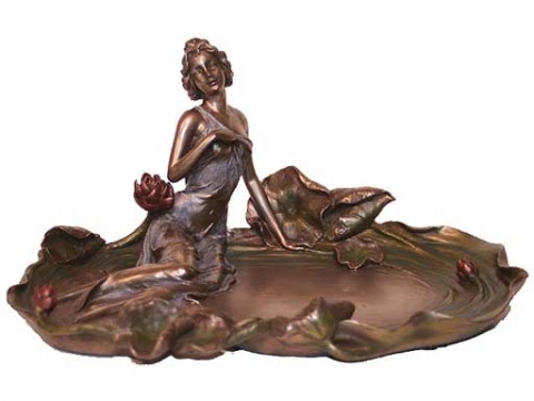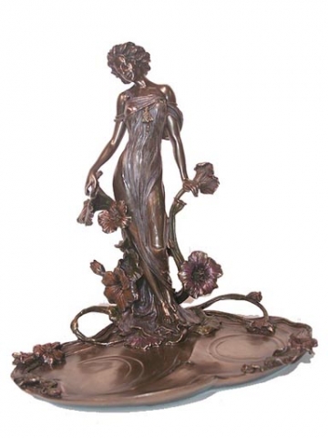 Mujer con bandeja y camelias patina en acabado bronze. Medidas 26x18x26 cm.Ref 03000687-AN10356A4