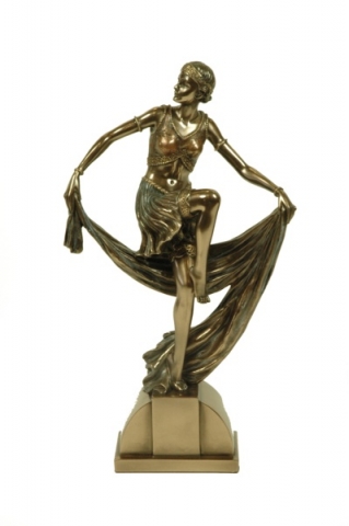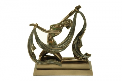 Mujer danzando, figura en resina con acabado bronce. Medidas: 16x8x18 cm.