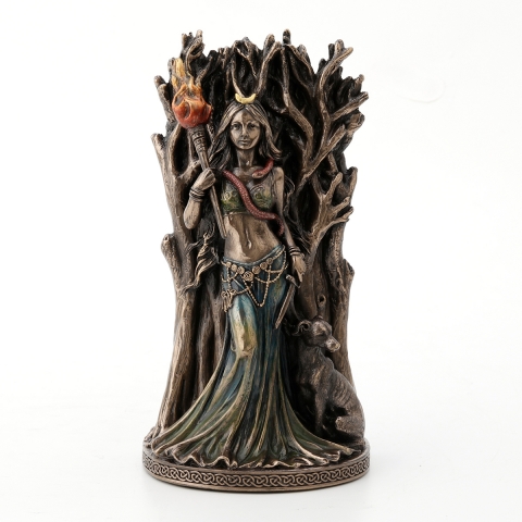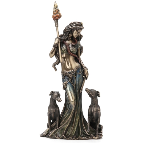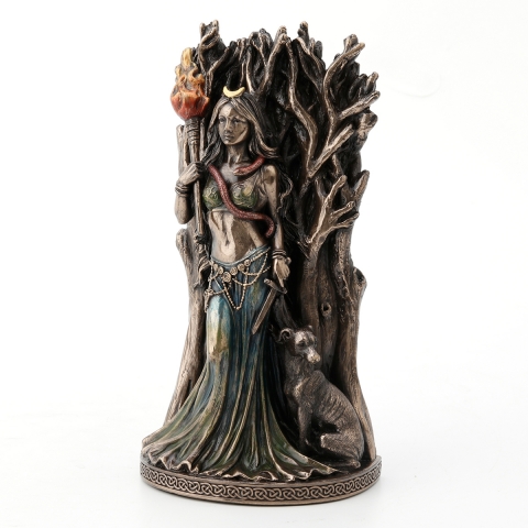 HECATE-GREEK GODDESSOF THE TRIPLE MOON in resin with patina in bronze finish. Measurements: 11,50 x 8,50 x 18 cm Weight: 550gr Brand: Veronese