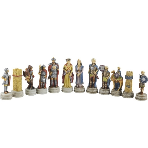 Hand-painted polyresin Moors and Christians chess pieces. Pieces only. Packaged in a box decorated with foam flocking.