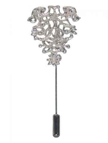 Silver-plated metal pin. Measures 6.5 x 2.5 cm. They are used to adorn virgins.