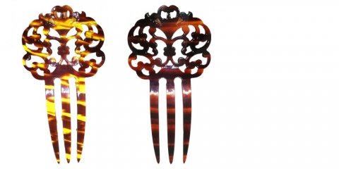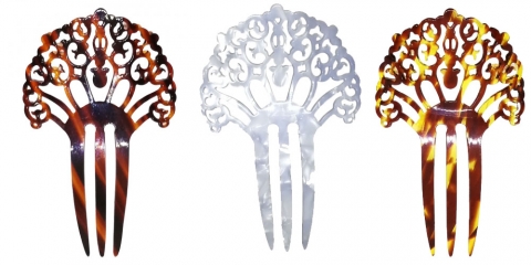 Shell comb made by hand and manufactured in Spain. Measurements 10 X 6 cm. Available in various finishes.
