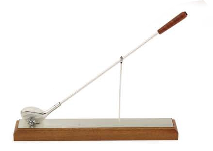 Golf stick in law silver with wooden base.Design Opera. Measures 20 cm.