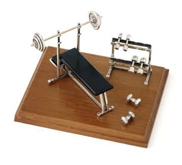 Gimnasio con base de madera. Complementos en plata de ley. Diseño Opera . Medidas 12 cm.
