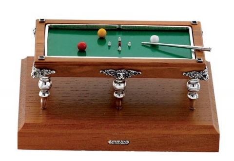 Billiards table with wooden base. Complements in law silver. Design Opera. Measures 8 cm.