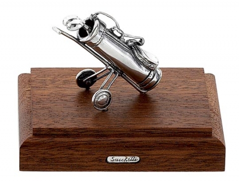Saco de golf con base de madera. Complementos en plata de ley. Diseño Opera . Medidas 8 cm.
