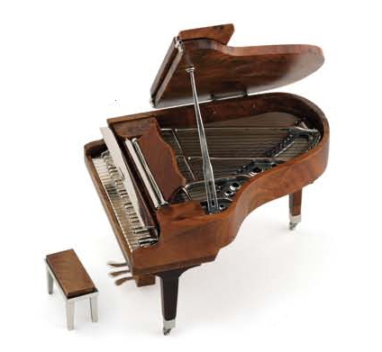 Piano de cola en madera y plata de ley.Diseño Opera . Medidas 12 cm.