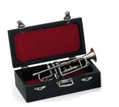 Trumpet with custody. Complements in law silver. Design Opera. Measures 16 cm.
