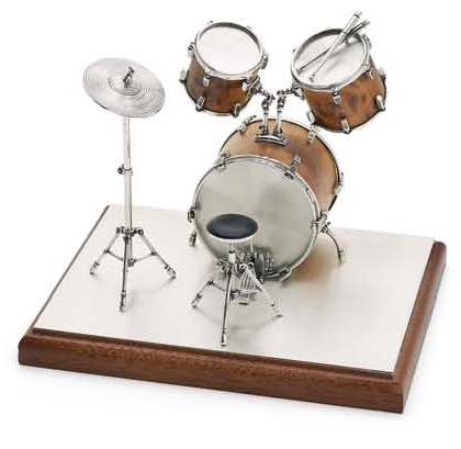 Batería con base de madera. Complementos en plata de ley.Diseño Opera . Medidas 16 cm.