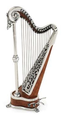 Harp with wooden base.Complements in law silver. Design Opera. Measures 9 cm.