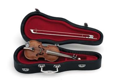 Violin de madera. Complementos en plata de ley.Diseño Opera . Medidas 14 cm.