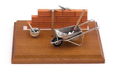 Profesión albañil con base de madera. Complementos en plata de ley.Diseño Opera . Medidas 12 cm.