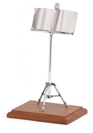 Atril partitura con base de madera. Complementos en plata de ley.Diseño Opera . Medidas 12.5 cm.
