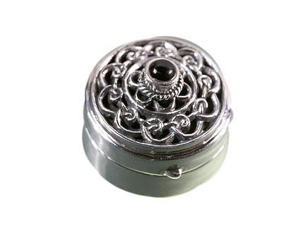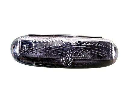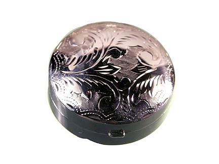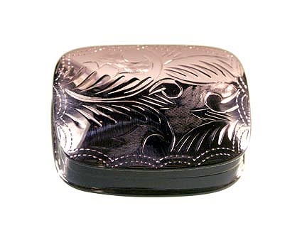 Cajita Grabada con piedra onix Plata de Ley. Medidas 2.5 cm x 1.2 cm. Peso 12.6 gr.