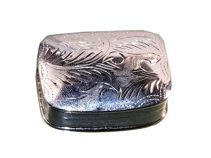 Cajita Grabada Plata de Ley. Medidas 2 cm x 1.2 cm. Peso 8.7 gr.