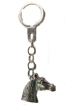 Llavero cabeza de caballo en Plata de Ley. Peso 29.40 gr aprox. Medidas 30x25 mm.