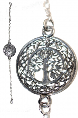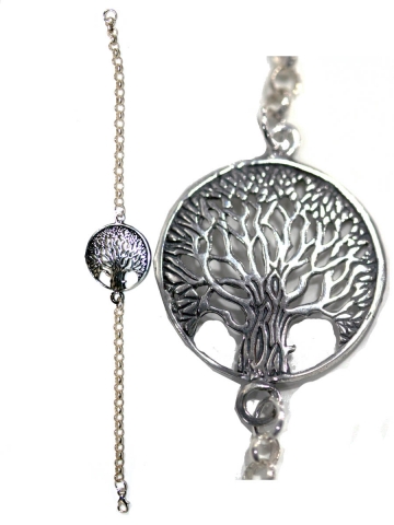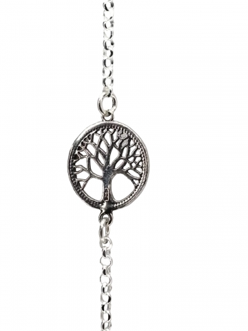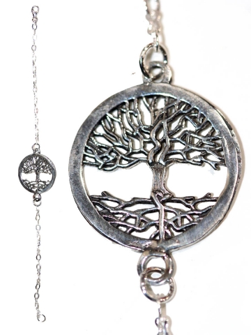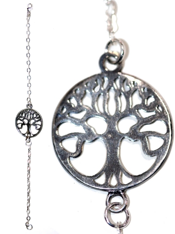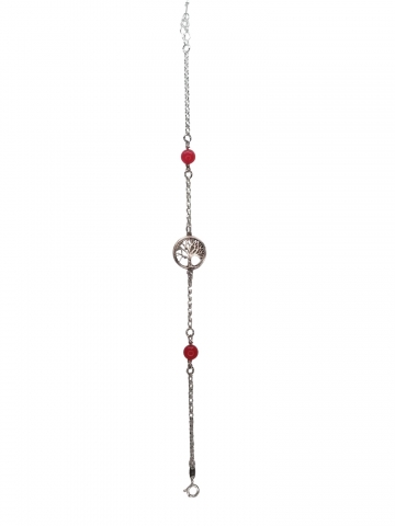 Pulsera Amuleto ´"Arbol de la vida" con bolas de cristal Medida de la mano 3x1.5 cm, y largo 20 cm con alargador graduable. En Plata de Ley. Dispònible con bolas de varios colores