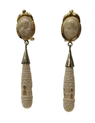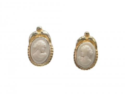 Pendientes Camafeo en color marfil , de plata de ley chapados en oro. Medidas 2 x 1.4 cm. Cierre Presión.