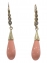 Pink coral teardrop earrings, made of gold-plated sterling silver with imitation coral beads. Measures 4.8 x 1.4 cm. Rhinestone clasp.