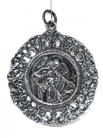 Crib medals in "Sterling Silver" Measures 6 cm Ø. Weight 22/24 Gr. Model 5: Guardian Angel.