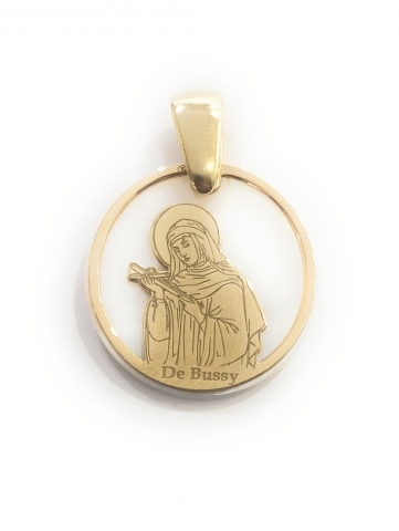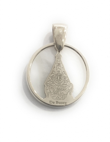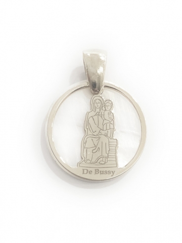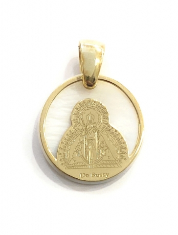 Medalla colgante de San Miguel Arcángel en plata de ley 925 milésimas y nácar. San Miguel Arcángel, defiéndenos en la lucha. Sé nuestro amparo contra la perversidad y asechanzas del demonio.Medida: 15mm.