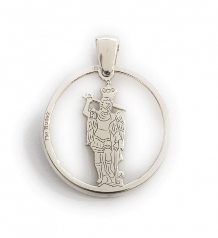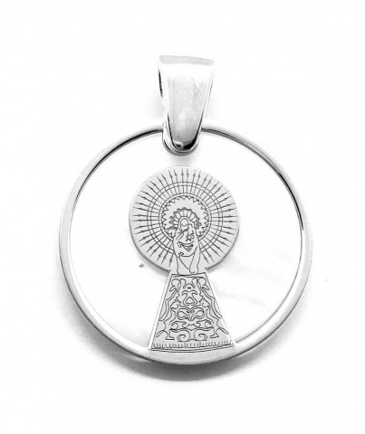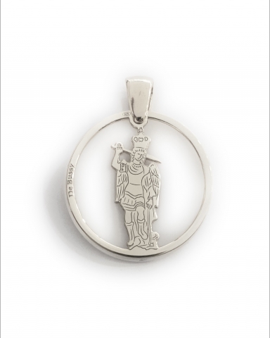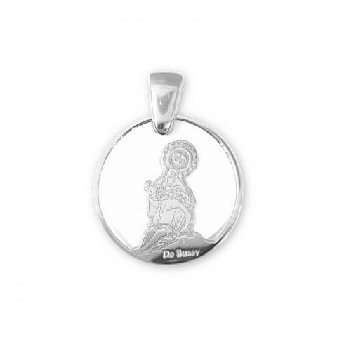 San Miguel Arcángel pendant medal in 925 thousandth and pearl sterling silver. San Miguel Arcángel, defend us in the fight. Be our amparo against the perversity and rods of the devil. Media: 15mm.