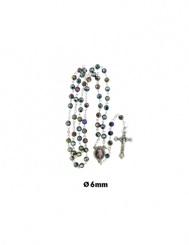 Rosario con cuentas de cristal tallado con reflejos. Medida de 6mm