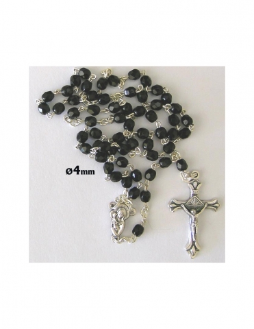 Rosary with black cut glass beads. 7mm in size.